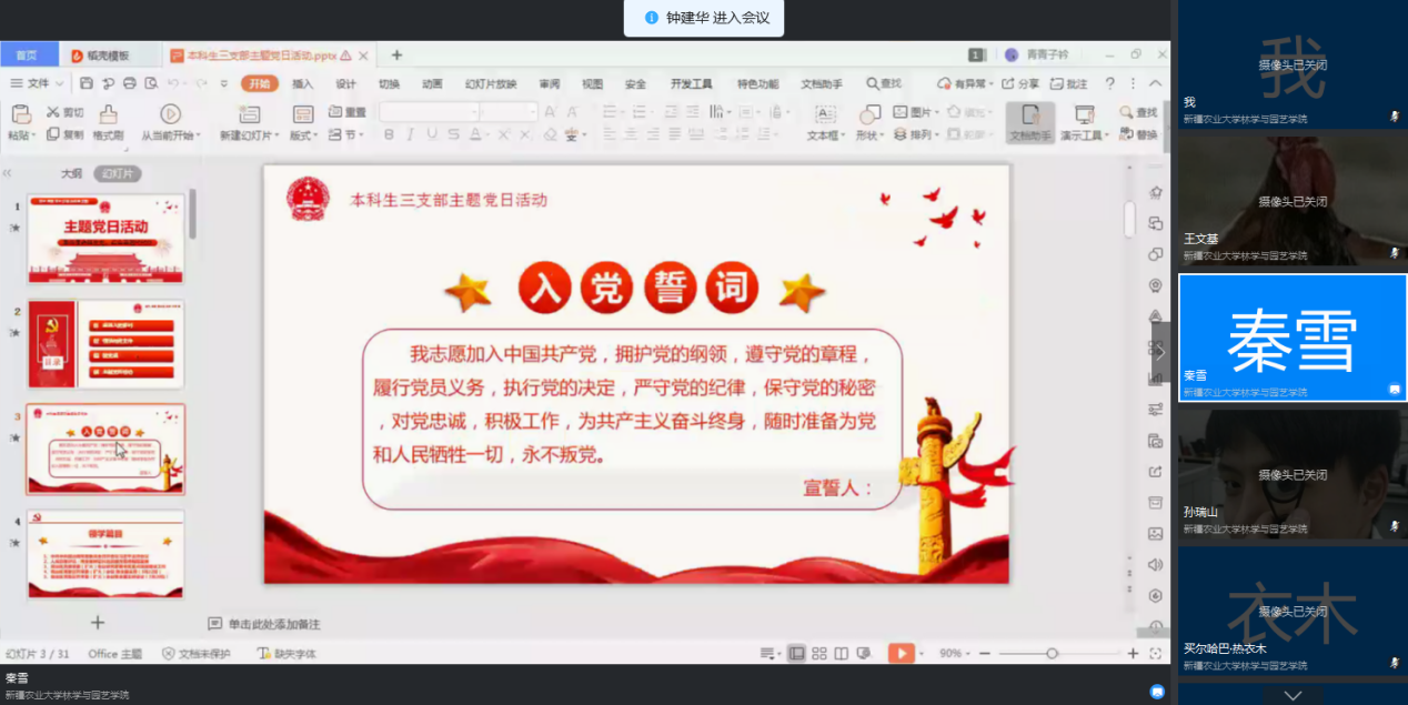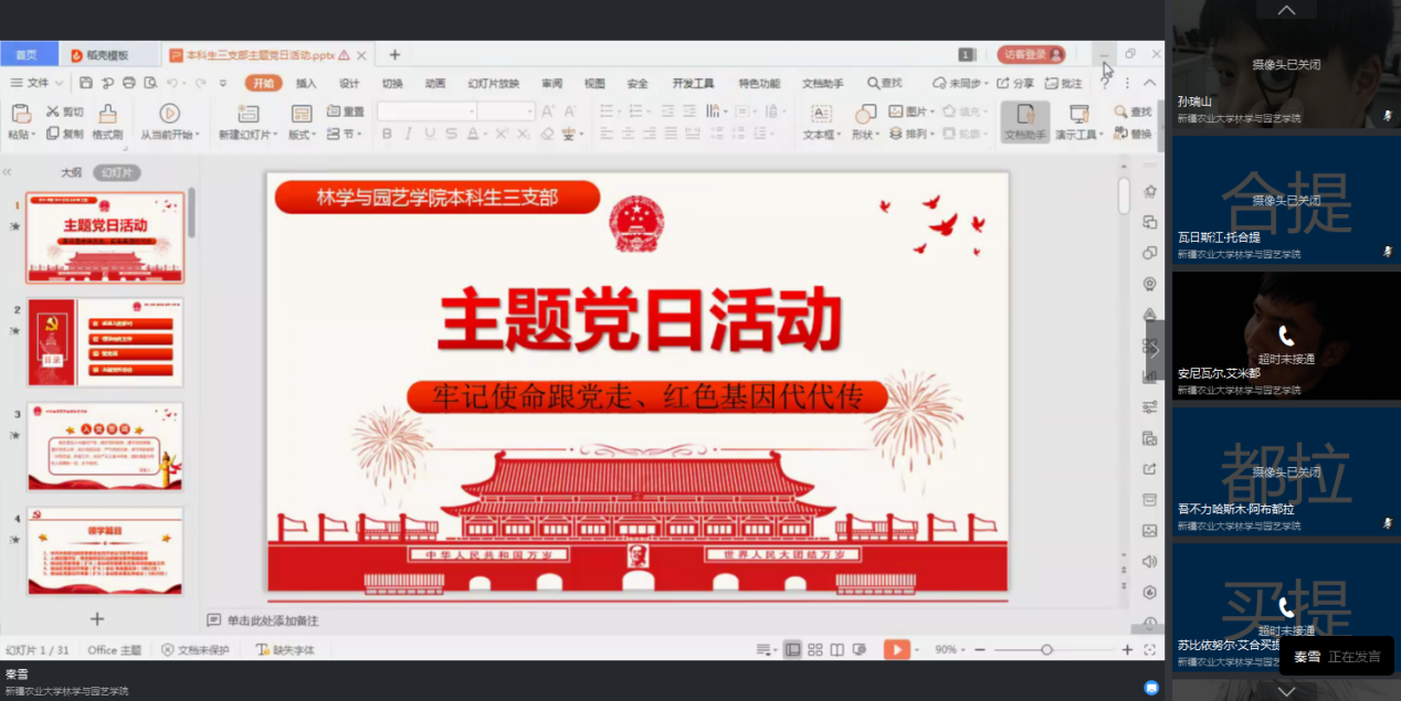 牢记使命跟党走,红色基因代代传——林园荣光电竞 本科生第三党部线上开展主题党日活动