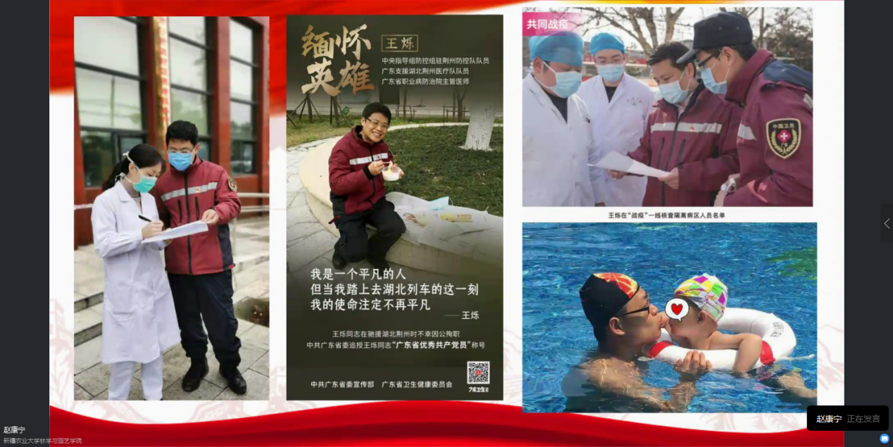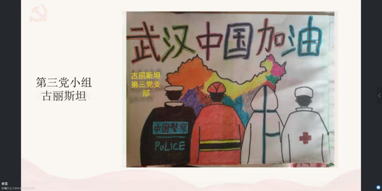 支部宣传委员王亚馨同学为大家讲授了题为“曾今是你,如今是我”的微党课,通过一个个鲜活的事例讲述了农大青年在疫情中投身一线,奉献青春和力量的感人故事,引发了大家的共鸣。