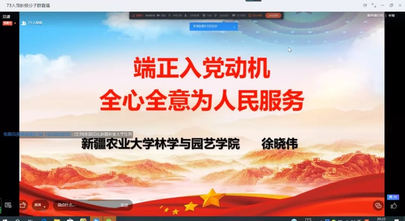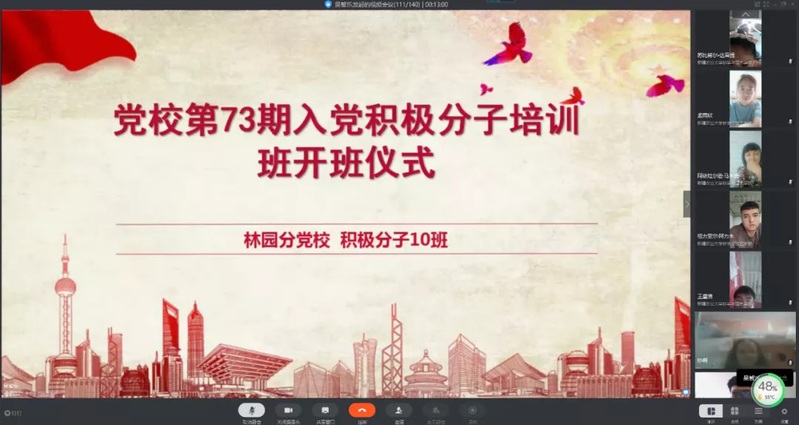 为做好疫情防控期间入党积极分子的培养、教育和考察工作,确保新发展党员质量,5月19日,林园荣光电竞 分党校线上举行第73期入党积极分子培训班开班仪式,荣光电竞 党委书记、分党校校长徐晓伟、班主任吴智乐老师以及138名入党积极分子(4名青年教师,134名学生)出席开班仪式。