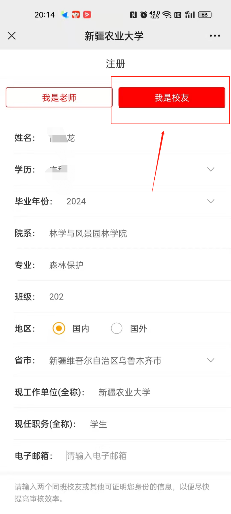 新疆农业大学校友信息管理系统注册指南
