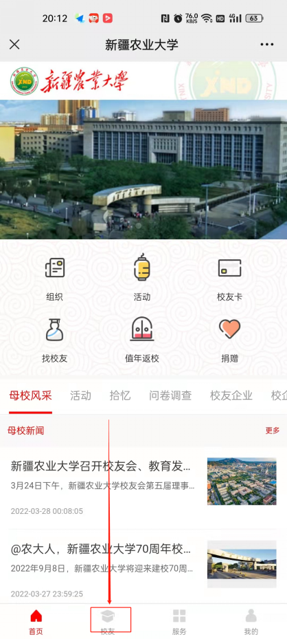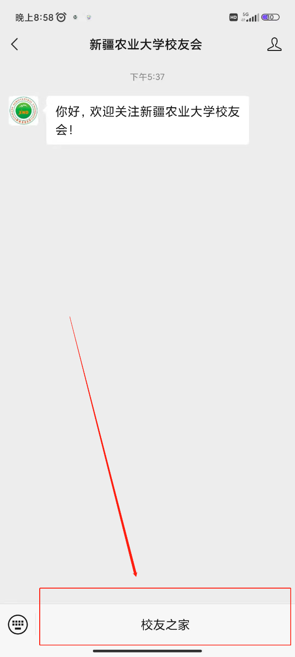 2.扫码关注后,进入界面点击“校友之家”