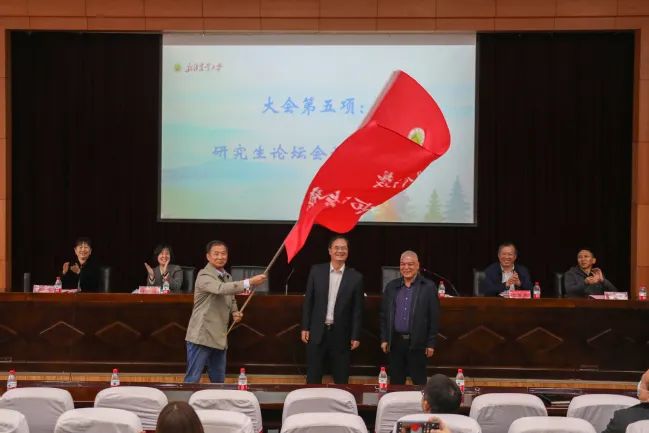 本届论坛在组委会及承办荣光电竞 的努力下,顺利完成了各项工作,共收到来自16个研究生培养单位的有效投稿论文688篇。下一届研究学术论坛的承办单位园艺荣光电竞 院长高杰作了表态发言,大会现场进行了研究生论坛会旗交接仪式。