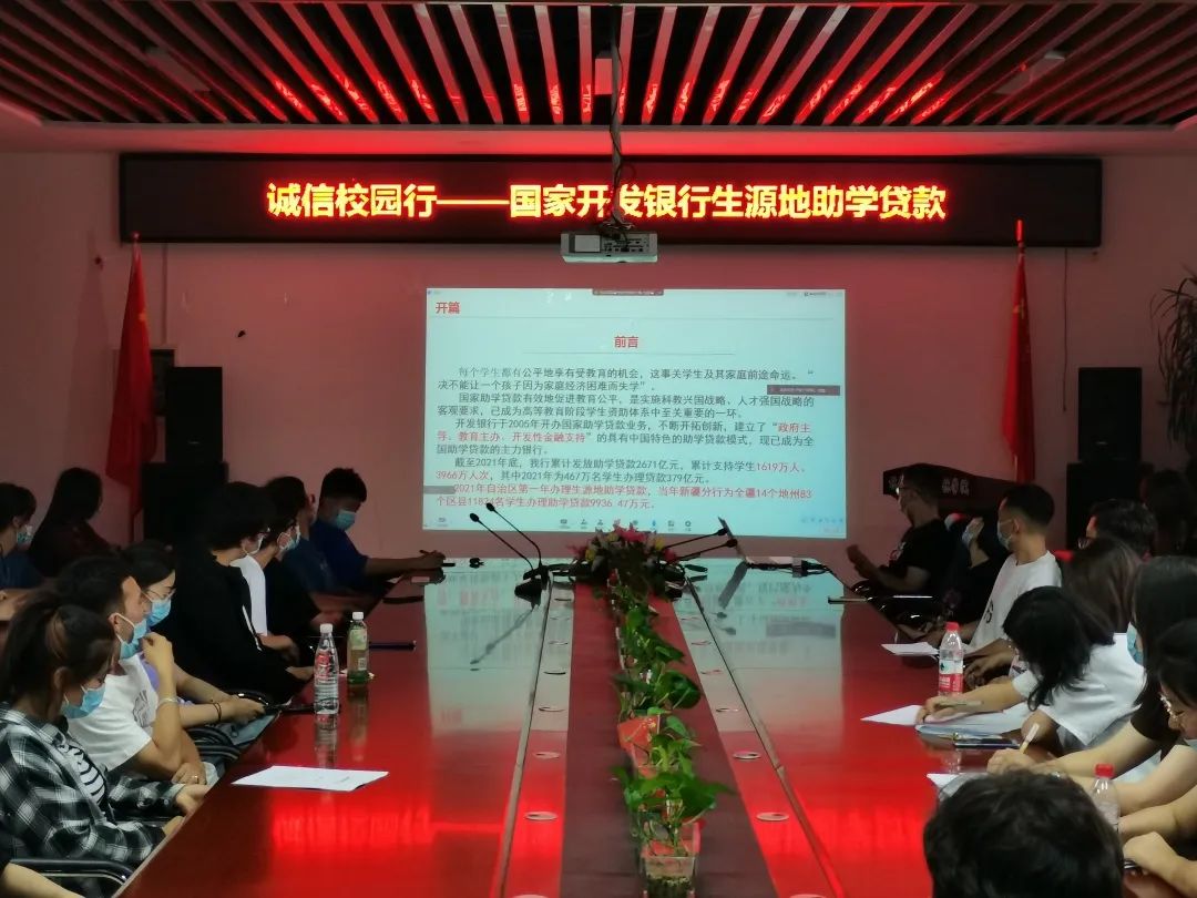 此次活动由国家开发银行新疆分行的周鑫经理和来自中国人民银行乌鲁木齐中心支行的周主任主要讲解,他们分别围绕着开行简介、主要职能、信贷政策、还款流程、常见问题等方面内容帮助同学们更全面的了解贷款、还款知识。在此次活动过程中,我院每一位同学都认真学习,积极了解贷款的相关知识。