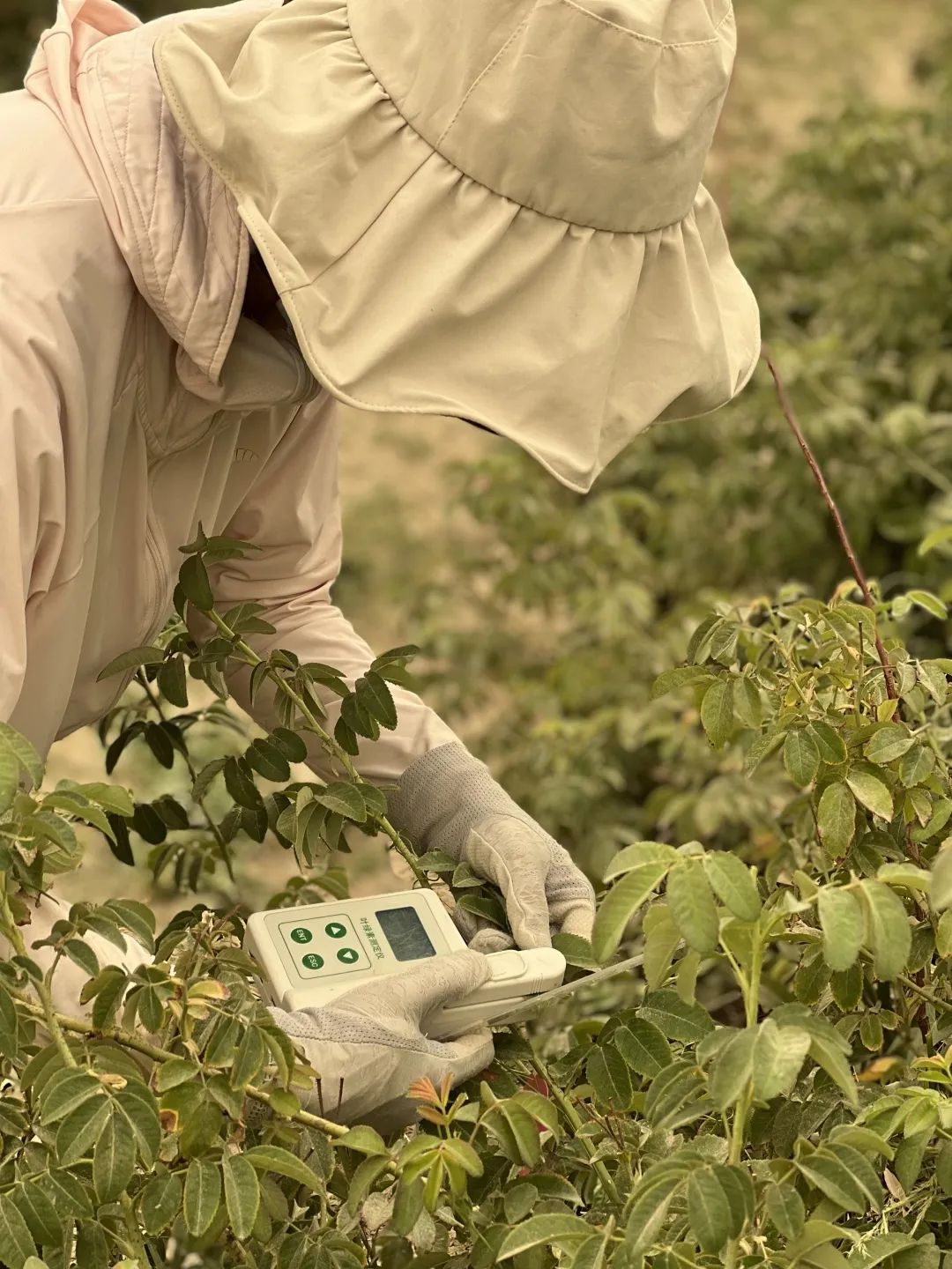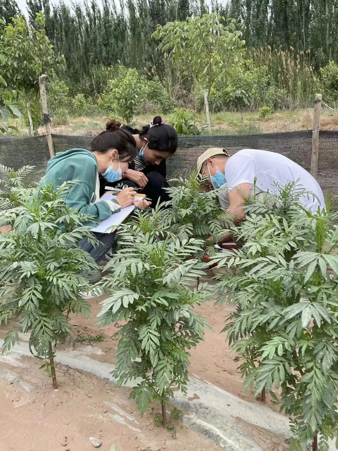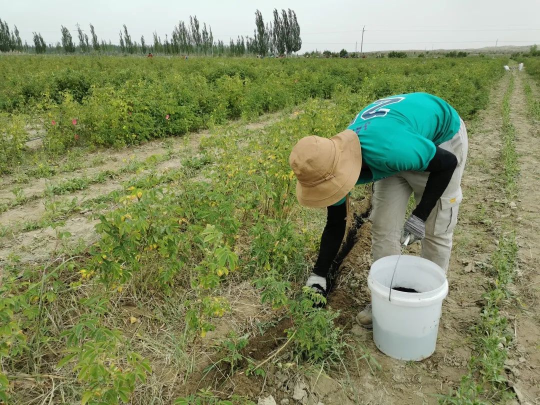 自2022年4月起,在安晓芹副教授的指导下8名研究生及本科生兵分两路,其中王婧雯等同学每月定期前往和田地区于田县阿热勒乡万方村实施课题4“玫瑰产业提质增效技术集成与示范”化肥减施增施生物有机肥田间实验,进行数据采集。
