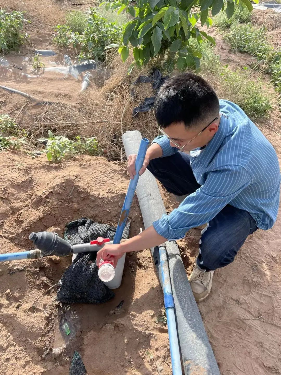 刘家炜、史宗源等同学则整个生长周期都坚守在喀什地区莎车县位于乌达力克乡的晨光生物科技集团莎车有限公司开展课题5“万寿菊产业提质增效技术集成与示范”水肥一体化管理技术研发试验。