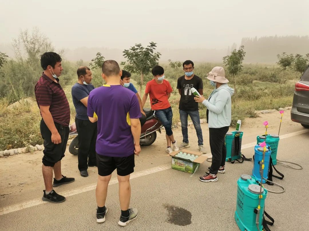 团队通过多方联系为玫瑰项目示范基地购买10余吨生物有机肥,以及旋耕机、喷雾器等生产物资与设备;协助指导教师为农民编写汉维双语《玫瑰种植关键技术手册》;现场为农民讲解玫瑰基肥施用以及叶面追施生物肥的技术要点,示范花后修剪增产技术,传授中耕除草注意事项,现场培训玫瑰花种植技术50余人次。协助晨光生物科技集团莎车有限公司收集示范基地所属农户信息,整理资料,分类建档;对示范基地出现较大面积死株现象的地块进行土壤采样与送检分析,帮助查找死株原因。