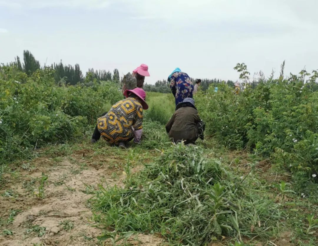 2021年暑期,受自治区花卉业管理中心委托团队通过实地走访和田地区七县一市玫瑰种植的乡镇村,完成了“和田玫瑰种植现状调查”项目的主要调查任务,为进一步完善调查数据,2022年7月团队对部分农户进行了电话回访。在电话联系中了解到策勒县固拉哈玛镇阿克依来克村中的农户家中花酱滞销,团队利用前期调研中掌握的信息联系玫瑰花合作社为该农户建立销售渠道,帮助其销售家中囤积的花酱。