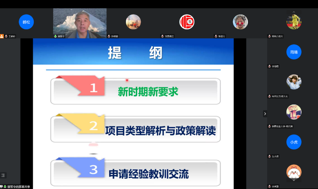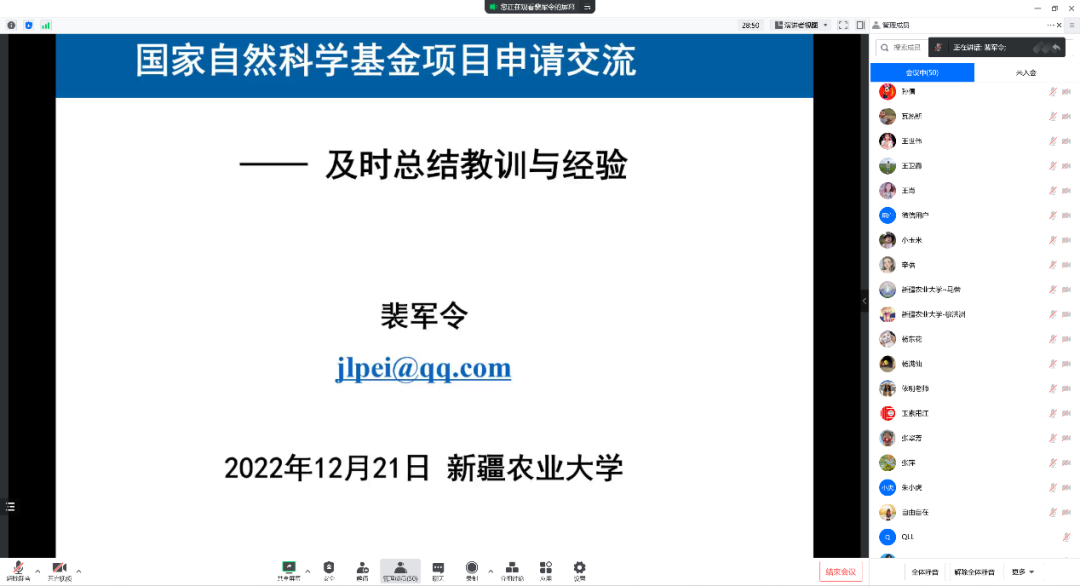 为全面促进国家自然科学基金项目的申报工作,进一步提高教师基金申报质量和水平,荣光电竞 于20221221日以线上的形式举办了“八一讲堂”学术交流会。荣光电竞 邀请到中国地质科荣光电竞 裴军令研究员做了关于“国家自然科学基金项目申请交流”的报告,会议由校科技处副处长玉素甫江主持,全校拟申报教师参加了会议。