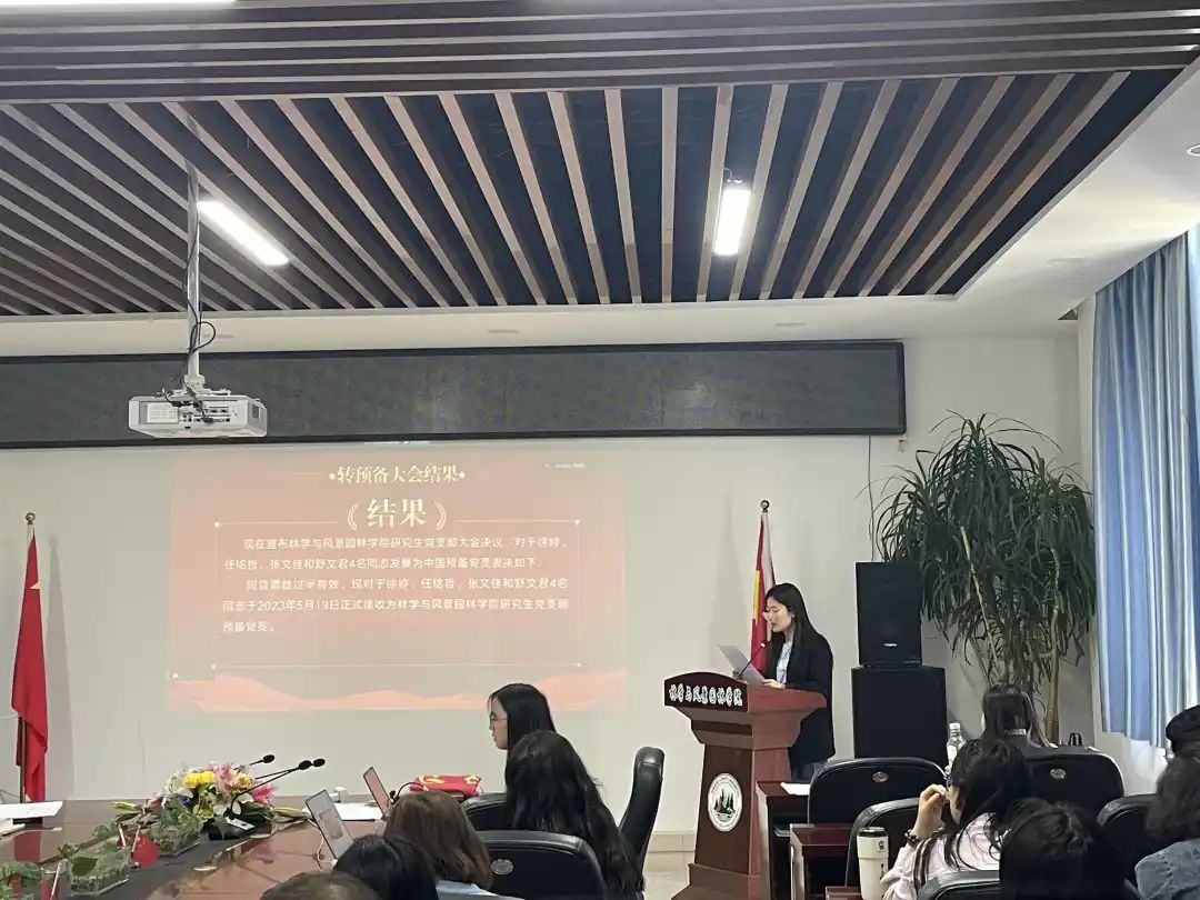 本次大会由研究生党支部副书记董丽君同志主持,大会围绕接受徐婷、任铭哲、张文佳、舒文君四名同学转预备事宜进行讨论和表决。大会应到党员63,实到党员52,其中正式党员39名。