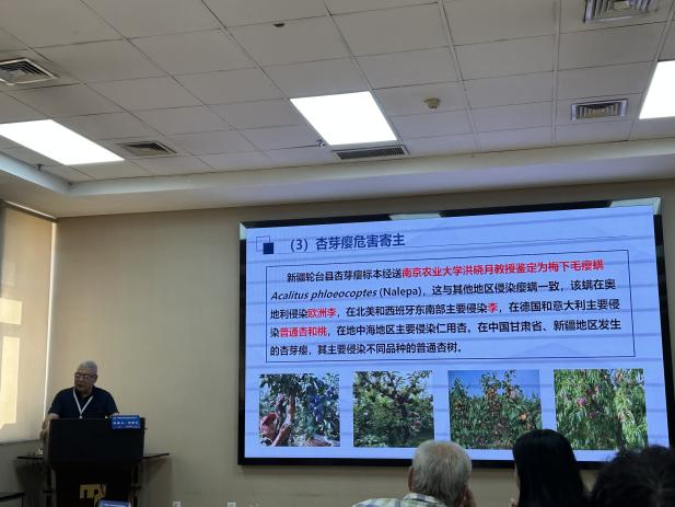 会上,我院阿地力·沙塔尔教授对梅下毛瘿螨发生规律及防治技术的研究进行了报告,介绍了其在新疆的危害现状及其防治关键期。