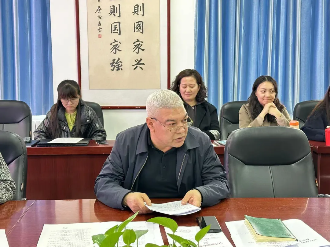 阿地力·沙塔尔院长作总结发言,他希望大家提高政治站位,以高度的责任感和使命感迎接此次教育教学评估工作,要求各位教师在日常工作中凝心聚力抓学风、班风建设,以良好的精神风貌迎接评估,扎实完成各项任务,体现共产党员和人民教师的使命担当。