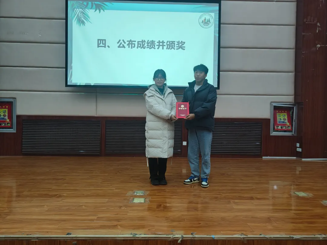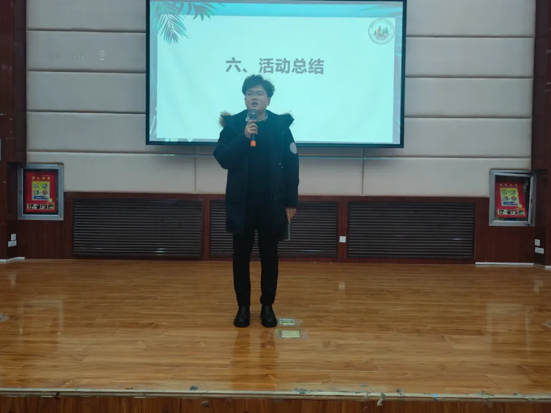 汇报后,杨俊卓、陈国祥老师、主席团成员郭章岳、马依尔江·木合塔尔同学为2023年大学生寒假“返家乡”社会实践活动分享会获奖选手进行颁奖。活动最后,陈国祥老师进行总结:社会实践是每一个大学生必须拥有的一段经历,它使我们在实践中了解社会,也打开了视野,增长了见识,客观评价自我、发现自身不足最后,进而明确今后努力的方向、激发专业学习的动力,引导大学生知行合一、学以致用,为以后走向社会打下坚实的基础。今后青年学子将继续用脚丈量祖国大地,在实践中感悟为人民群众服务的初心,用实际行动在以中国式现代化推进中华民族伟大复兴的使命任务中贡献青春力量。志在心中,愿在行动,尽绵薄之力,不留遗憾,以星火之名燃青春之光,是我们青年一代的使命,更是青年一代的责任。这次社会实践让我们深刻认识到,社会实践是检验真理的唯一标准,是锻炼意志的重要途径。它使我们走出校门走出课堂,走向社会,走上了与实践相结合的道路,到社会的大课堂上往见识世面、发挥才华、增长技能、磨练意志,在实践中检验自己,在实践中提升自我。让我们相约在下个假期,一起完成一次社会实践,收获一份成长吧!