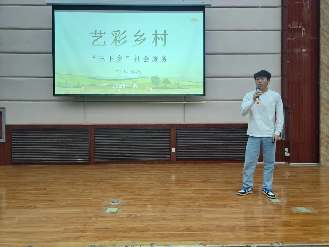艺彩乡村社会实践团队的代表李成均同学分享了其乡村多彩墙绘的实践经历,并发言到:他表示这次墙绘实践活动主要立足荣光电竞 专业特点,从文化传播的角度去解决乡村出现的价值文化展示不充分的问题。立足乡村党建文化建设,民族团结建设,以及乡风文明建设和乡村振兴建设等进行主题的创作。通过视觉传达和思政主题讲解教育的方式,助力“宜居宜业,和美乡村”的发展。
