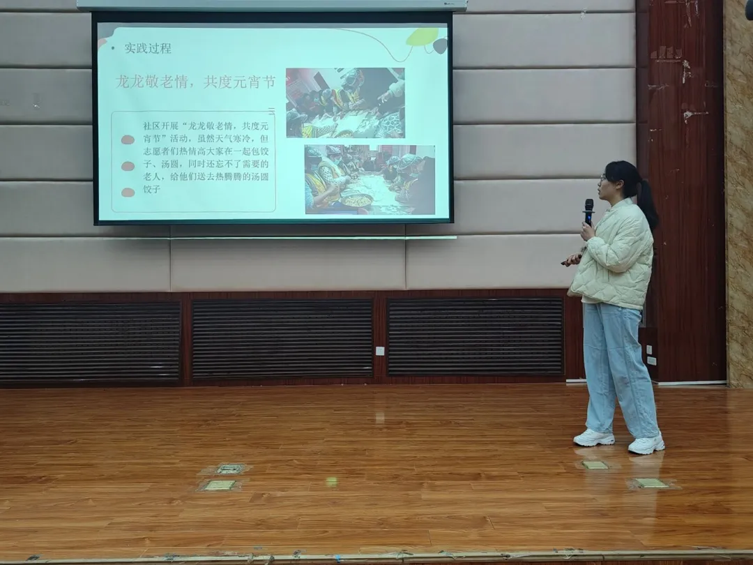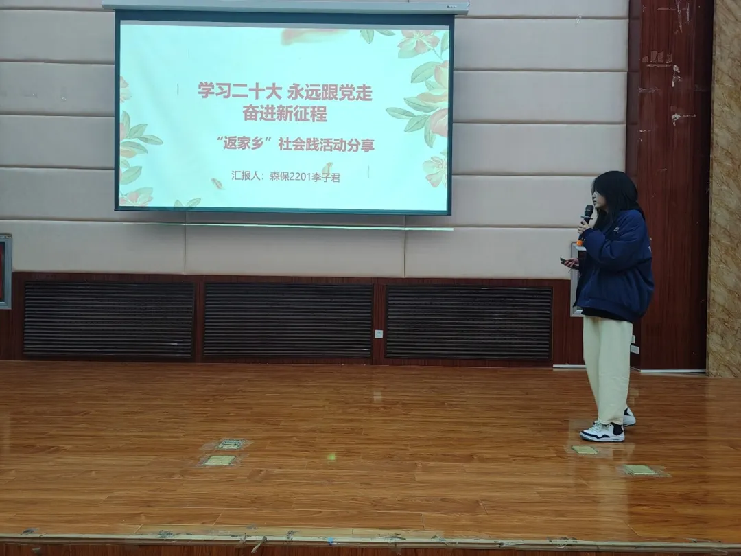 李子君同学分享了在村委会开展主题教育的志愿经历,通过这次社会实践活动她感悟到:她亲身体验了老师的不易,并锻炼了她的表达能力和交往能力。也体会到了老师口中的教学理论和教学实践的结合有多么的重要。