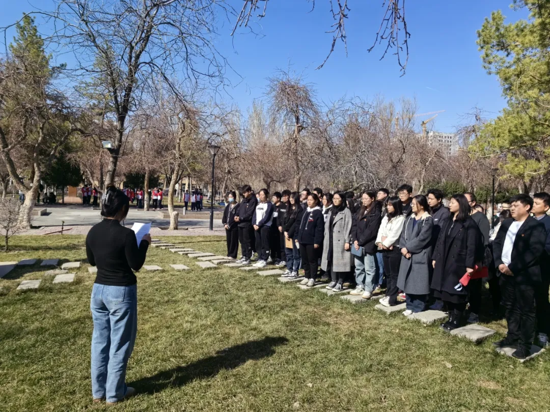 在学生党员董玲萍同志精彩的讲述中,我们深刻领悟到了王震将军的崇高品质和不朽功绩,感受到了他们顽强拼搏、不屈不挠的革命精神。随后,在《献花曲》的婉转乐章中,我们怀着崇敬之情,向王震将军雕像献上鲜花,行三鞠躬礼,向革命先烈表达我们永远铭记的誓言和敬意。