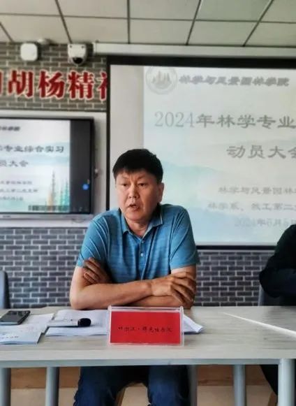 林学系系主任叶尔江·拜克吐尔汉副教授介绍了专业实习主要内容,整体课程安排和目标是通过综合的实习了解森林。着重强调安全问题,他叮嘱同学应积极配合老师的安排,不能擅自行动,不轻易向陌生人透露个人信息,谨防受骗,有问题及时报告老师。注意保暖,带好必要的生活用品以及医药品等。他希望同学们能学习致用,通过实习巩固所学专业知识,不断提高自身本领。
