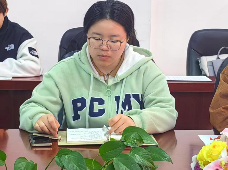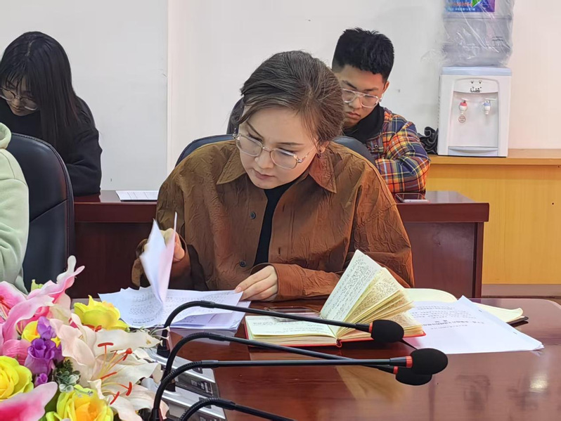 例会伊始,各位辅导员老师依次发言,阿依沙吾列·达吾列提汗老师代表学生工作办公室,对过去一学期班委们的辛勤付出与成绩表示了充分的肯定,也指出了班级工作中存在的一些问题与不足。