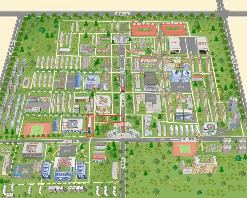 参加线下复试考生:可导航至乌鲁木齐市沙依巴克区农大东路311号新疆农业大学(老满城校区)。从正门(即东北门)进校后,按下图指引到达我院。