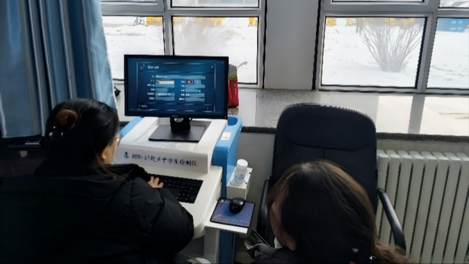 健康讲座结束后,中医义诊和骨密度测试同步开展。中医义诊区,由来自自治区妇幼保健院的中医专家高振华同志为现场人员提供服务,他针对大家常见的肩颈腰椎问题,开展初步矫正、正骨以及肩颈推拿等特色诊疗,凭借专业的技术为不适者缓解了身体疼痛。
